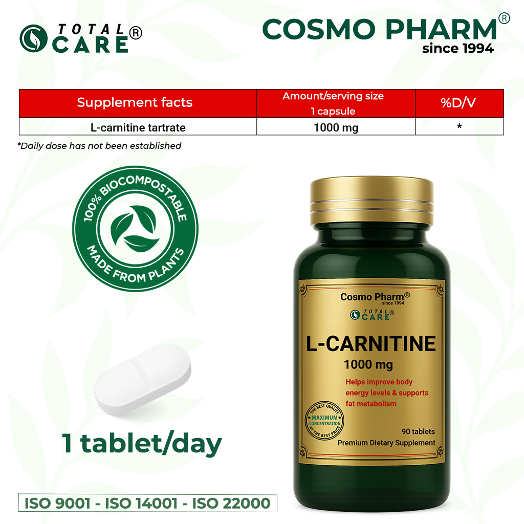 L-carnitine tartrate 1000 mg is ideal for athletes, amateur athletes, those who want to increase their sports performance and in weight loss diets.
